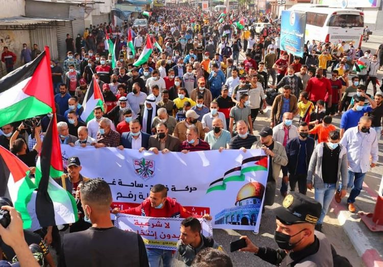 وتوافد آلاف الفلسطينيين إلى مناطق متفرقة في قطاع غزة، بناء على دعوة من تيار الإصلاح الديمقراطي في حركة فتح الذي يرأسه القيادي محمد دحلان؛ رفضا لأي قرار بتأجيل الانتخابات.