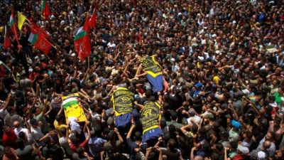 شارك عشرات آلاف الفلسطينيين، اليوم الأحد، في موكب تشييع جنازة القيادي في حركة الجهاد الإسلامي "خالد منصور، واثنين من رفاقه، الذين استشهدوا في غارة اسرائيلية برفح جنوب قطاع غزة، وسط غياب لقادة الحركة الكبار عن "التشييع" تحسبا لقيام اسرائيل بتنفيذ عمليات اغتيال ضدهم.