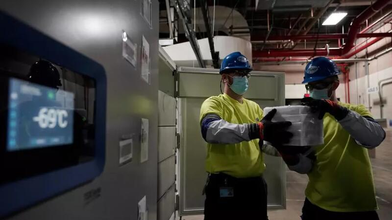 تجري الأحد عملية لوجستية ضخمة لنقل ملايين الجرعات من لقاح فايزر/بايونتيك المضاد لكوفيد-19 مخزّنة على حرارة تبلغ 70 درجة مئوية تحت الصفر، إلى أنحاء الولايات المتحدة تمهيدا للمباشرة الإثنين بحملة تلقيح ضد الوباء.