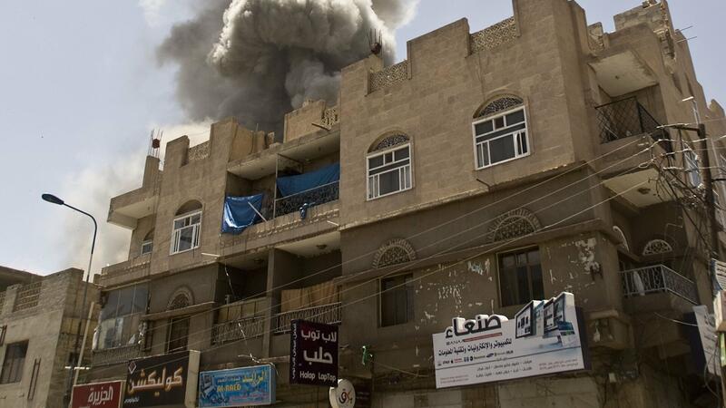 وقال سكان محليون إن مقاتلات التحالف شنت نحو عشر غارات جوية عنيفة على جبل النهدين المطل على دار الرئاسة، و معسكر الحفا، ومنطقة جربان بمديرية سنحان.