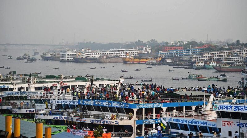 وكانت العبارة مزدحمة بالركاب الذين كانوا في عجلة لمغادرة المنطقة الصناعية في ظل إعلان الحكومة إغلاقا وطنيا عاما اعتبارا من الاثنين لاحتواء انتشار فيروس كورونا.(وكالات)