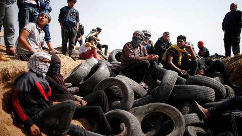 وجمع الشبان الفلسطينيون عدداً كبيراً من إطارات السيارات لإشعالها خلال تظاهرات اليوم، إضافة إلى مرايا للتشويش على القناصة من الجنود الإسرائيليين على الجانب الآخر من السياج.
