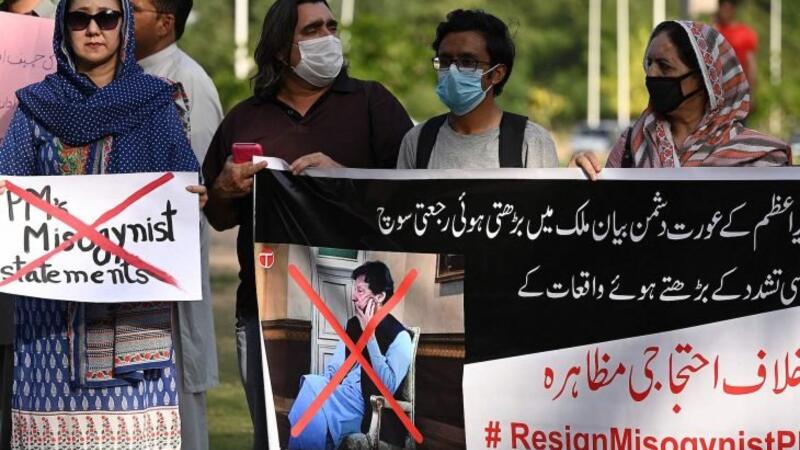 وطالبت أكثر من عشر منظمات تنشط في الدفاع عن حقوق النساء بينها اللجنة الباكستانية لحقوق الإنسان، وهي هيئة مستقلة، رئيس الوزراء الباكستاني بالاعتذار عن التصريحات التي أدلى بها.
