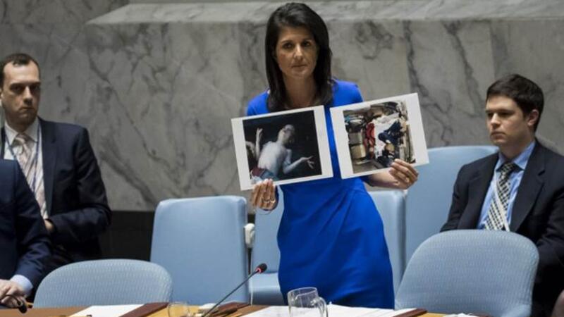 وكانت مندوبة الولايات المتحدة لدى الأمم المتحدة نيكي هايلي من الأوائل الذين علقوا على مضمون التقرير قائلة: "الآن، عندما نعرف الحقيقة التي لا يمكن إنكارها، ننتظر إجراء تحقيق مستقل للتأكد من هوية الجهة المسؤولة عن هذه الهجمات الوحشية، لكي نحقق العدالة من أجل الضحايا".