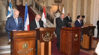 أعلن وزراء خارجية فرنسا واليونان وقبرص ومصر في ختام اجتماع عقدوه الاربعاء في القاهرة دعمهم لمؤتمر برلين الدولي الذي سيعقد الشهر الجاري في محاولة للتوصل الى تسوية للأزمة الليبية.