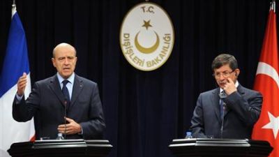وقال جوبيه الذي تحدث في مؤتمر صحفي مشترك مع وزير الخارجية التركي احمد داود اوغلو ان فرنسا مستعدة للعمل مع المعارضة السورية وان هناك حاجة الى عقوبات اشد على دمشق.