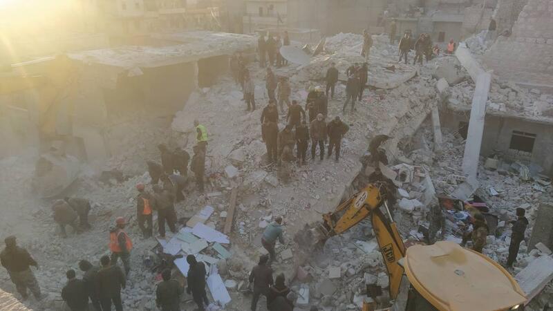 عدسة #المرصد_السوري لحقوق الإنسان ترصد عملية إزالة الركام ومحاولة إنقاذ العالقين جراء سقوط مبنى سكني مؤلف من 5 طوابق في حي الشيخ مقصود بمدينة حلبhttps://t.co/uESiJEallq pic.twitter.com/A1jnqXbQKa