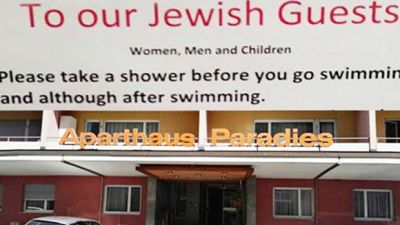 اثار وضع فندق سويسري لافتات تطلب من نزلائه اليهود الاستحمام قبل استخدام بركة السباحة وتحدد مواعيد استخدامهم لثلاجة الفندق غضبا عارما وشكاوى رسمية من اسرائيل.