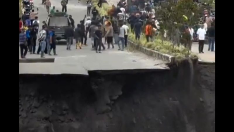 - انهيار طريق بشكل مُروع في إندونيسيا بسبب فيضانات وانهيارات أرضية