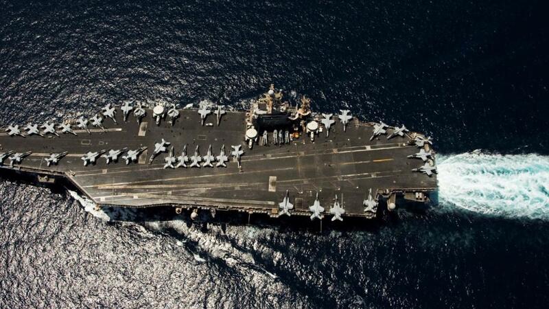 بالتزامن مع ذلك أجرت سفن حربية تابعة للبحرية الأمريكية، مناورات عسكرية في بحر العرب، ونفذت عمليات عسكرية وأخرى تحاكي حالة حرب لتحسين العمليات التكتيكية. واعلنت البحرية الأمريكية  أن سفنًا حربية أميركية، أبرزها حاملة الطائرات الهجومية أبراهام لنكولن شاركت في المناورات.