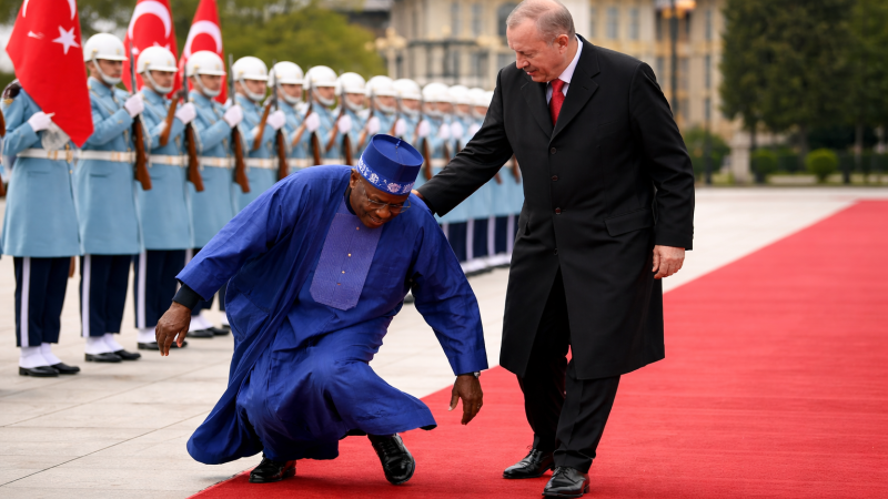 - الرئيس النيجيري يتعثر خلال مراسم رسمية في أنقرة بحضور نظيره التركي