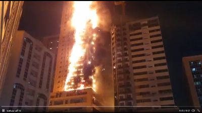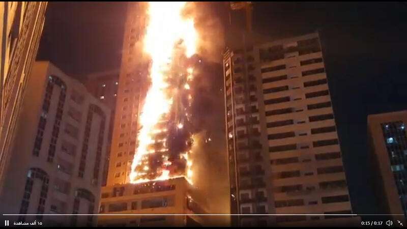 حريق هائل يلتهم ناطحة سحاب «سكنية» بمدينة #الشارقة في #الإمارات pic.twitter.com/IiXYtk4stE