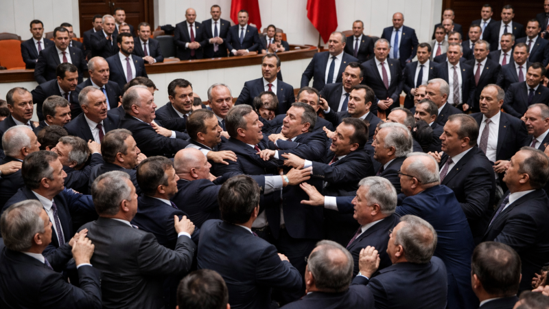 شهد البرلمان التركي، اليوم، حالة من الفوضى بعدما تطور خلاف حاد بين نواب من الحزب الحاكم ونواب من المعارضة إلى اشتباك بالأيدي، على خلفية تعيين شخصية مثيرة للجدل في وزارة العدل ضمن تعديل وزاري أُعلن مؤخرًا.