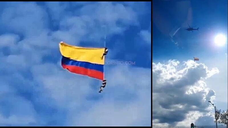 وكان ضابطا الصف، خيسوس موسكويرا وسيباستيان غامبوا، متدليين من حبل معلق بمروحية عسكرية ويمسكان بعلم ضخم لبلادهما، في إطار عرض جوي في اختتام مهرجان الزهور الذي يقام سنويا في المدينة.