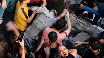 انتشال جثث من تحت أنقاض المباني المدمرة في قطاع غزة