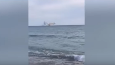 والتقطت عدسات الكاميرا، الطائرة أثناء قيامها بتحليقات قبل أن تهوي نحو البحر، حيث لم يستطع الطيار الصعود إلى أعلى مرة أخرى لتتحطم به الطائرة في البحر.