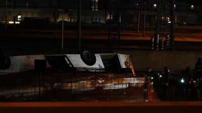 وبعد السقوط، اشتعلت النيران في الحافلة، مما دفع فرق الإطفاء إلى التحرك بسرعة لإخماد الحريق.