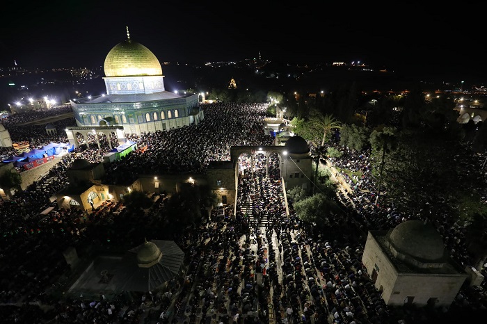 احيا اكثر من 300 الف فلسطيني ومسلم ليلة القدر الموافقة لـ الـ 27 من شهر رمضان المبارك في رحاب المسجد الاقصى المبارك على الرغم من محاولات قوات الاحتلال الاسرائيلي عرقلة وصول المصلين الى المسجد