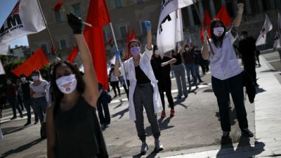 كما شارك مئات العمال اليونانيين في مسيرة خارج البرلمان جرت تحت لافتة نقابة "بي إم أيه إي" المرتبطة بالشيوعيين بينما عزفت فرقة صغير أغنية "بيلا تشاو" الإيطالية التقليدية.