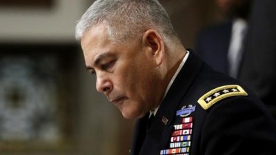 قال قائد القوات الأمريكية في أفغانستان، الجنرال جون كامبل، الخميس، إنه "لم يكن من حق العسكريين الأمريكيين في هذا البلد (أفغانستان) مهاجمة عناصر تنظيم الدولة الذين ظهروا هناك منذ كانون الثاني/ يناير عام 2015".