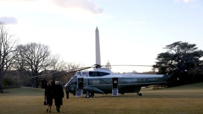 وألقى ترامب قبل الصعود إلى متن المروحية كلمة قصيرة وصف فيها ولايته بأنها "أكبر شرف لحياته"، وتمنى ألا يكون وداعه للبيت الأبيض لفترة طويلة.