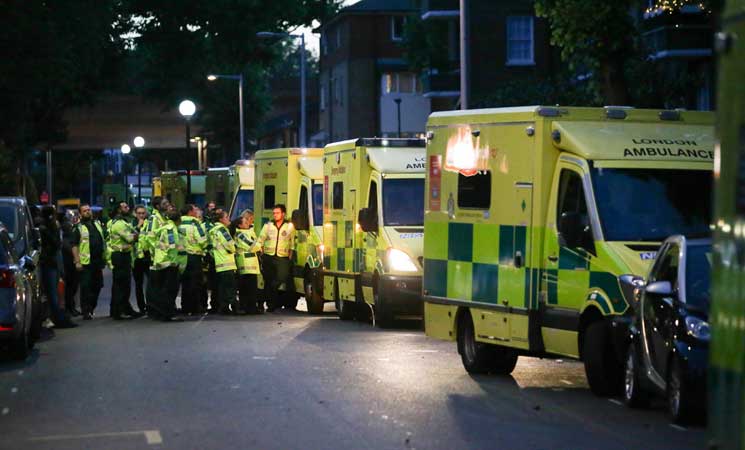 وقالت فرق الإطفاء في العاصمة البريطانية إنه “تم استدعاء 40 شاحنة إطفاء ومئتي عنصر إطفاء بسبب حريق في برج (لانكاستر وست إستايت)” في حي نورث كنسينغتون.