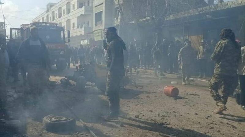 وقال مصدر في الدفاع المدني التابع للمعارضة لوكالة الأنباء الألمانية إن شاحنة متوسطة الحجم انفجرت وسط السوق في البلدة، ما خلف أضرارا كبيرة في السيارات والمحال التجارية والأبنية.