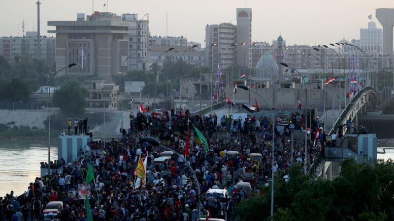 قتل شخصان على الأقل وأصيب عشرات آخرون باشتباكات بين محتجين عراقيين وقوات الأمن قرب جسر السنك وسط بغداد، الجمعة.