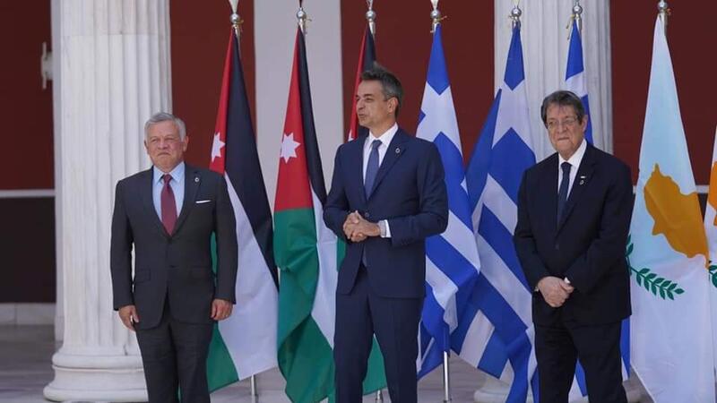 وبدأت في أثينا قمة ثلاثية تضم كلا من العاهل الأردني، الملك عبد الله الثاني، والرئيس القبرصي، نيكوس أناستاسيادس، ورئيس وزراء اليونان، كيرياكوس ميتسوتاكيس تعقد للمرة الثالثة