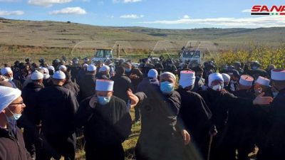 أصيب عدد من أهالي الجولان السوري المحتل بجروح بعد إطلاق الجيش الإسرائيلي الرصاص المطاطي وقنابل الغاز المسيلة للدموع خلال محاولة الأهالي منع القوات الإسرائيلية من دخول أراضيهم.