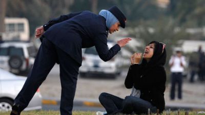 اوقفت الشرطة البحرينية ناشطة في الدفاع عن حقوق الانسان بعدما اوثقت يديها واقتادتها بالقوة وضربتها لرفضها انهاء اعتصام، كما كشف فيديو وضع على موقع يوتيوب الجمعة وتصريحات لناشطين حقوقيين.
