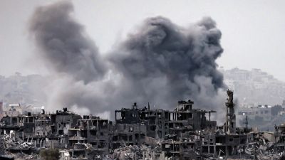 أعمدة الدخان تتصاعد من قطاع غزة بعد قصف إسرائيل. 12 تشرين الثاني، 2023م. وكالة الصحافة الفرنسية