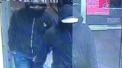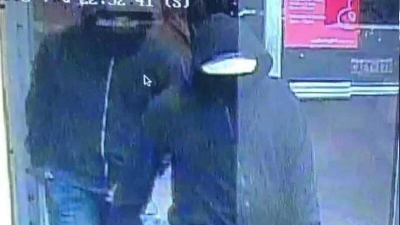 ونشرت الشرطة صورة على تويتر يظهر فيها رجلان في ملابس داكنة يدخلان منشأة، وأحدهما يحمل شيئا على ما يبدو.