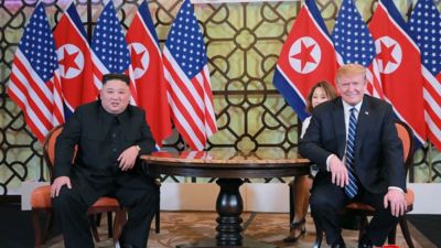 يذكر أن ترامب وكيم التقيا في المنطقة المنزوعة السلاح يوم الأحد واتفقا على استئناف المفاوضات على مستوى العمل بشأن تفكيك برنامج الأسلحة النووية لكوريا الشمالية. (د ب أ)