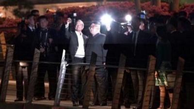 وزير خارجية سنغافورة يلتقط سلفي مع الزعيم الكوري الشمالي خلال نزهته الليلية