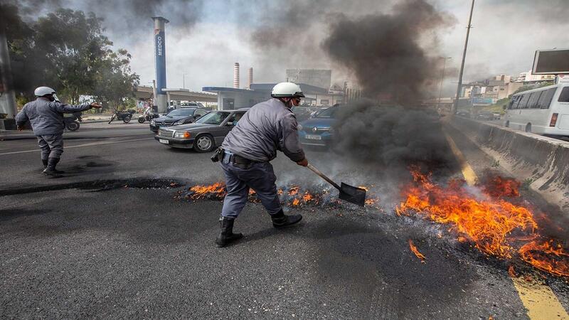 في وقت لاحق من المساء، أشعل المتظاهرون النار في صناديق القمامة وهاجموا البنوك قبل أن تفرقهم قوات الأمن.