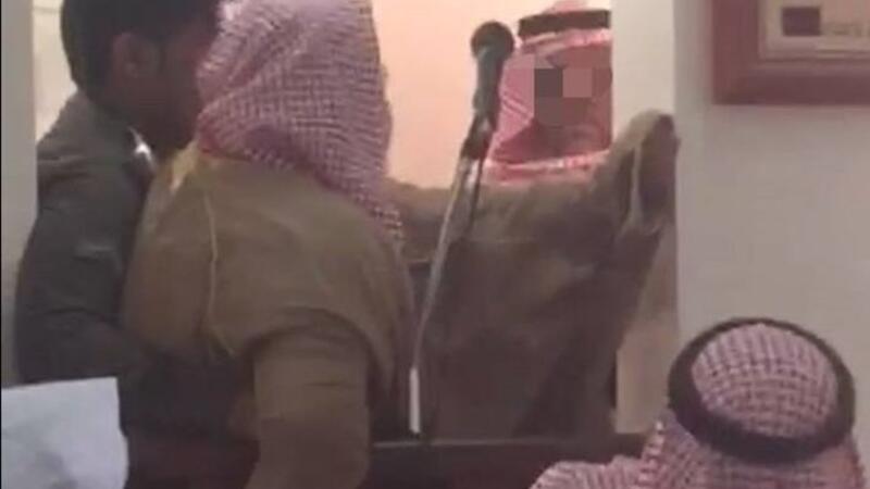 تداول ناشطون عبر مواقع التواصل الاجتماعي، فيديو يظهر إنزال رجل أمن، وآخرين، خطيبا مسنا من على المنبر في أحد مساجد السعودية.
