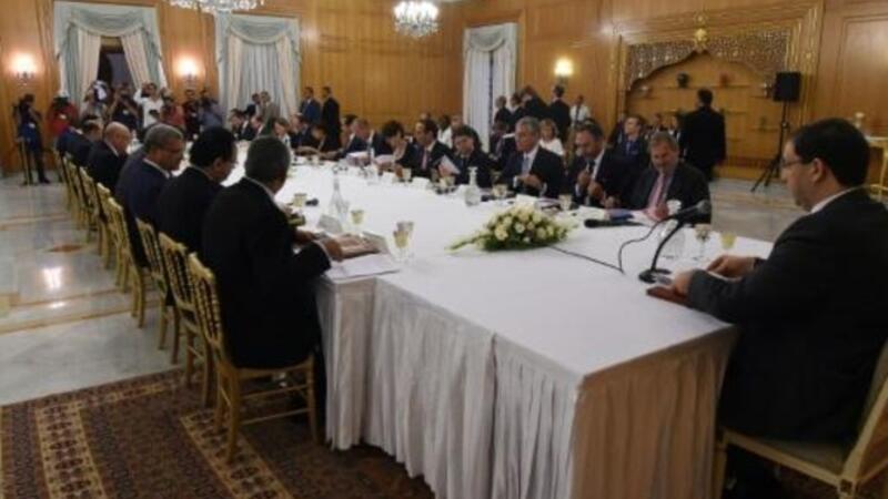 واجتمع رئيس الحكومة التونسية يوسف الشاهد بقصر الضيافة في قرطاج بالمانحين وممثلي ثماني مؤسسات تمويل دولية منها صندوق النقد الدولي والبنك الدولي والاتحاد الاوروبي والبنك الافريقي للتنمية يتقدمهم يوهانس هان المفوض الأوروبي المكلف سياسة الجوار وشؤون التوسع.