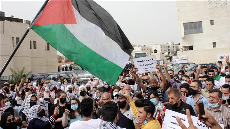 شارك مئات الأردنيين الأحد، في وقفة احتجاجية داعمة للمقدسيين وصمودهم ضد الاحتلال الإسرائيلي، قرب سفارة تل أبيب بالعاصمة عمان، وسط تواجد أمني كثيف.