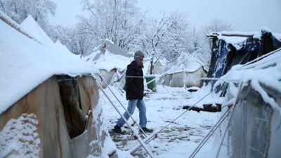يكافح مئات المهاجرين واللاجئين العالقين في مخيم مؤقت في غابة في البوسنة من أجل البقاء في ظل درجات حرارة تقل عن الصفر حيث تتساقط الثلوج على خيامهم، مما يثير مخاوف من موت البعض ما لم يعاد توطينهم بشكل عاجل.