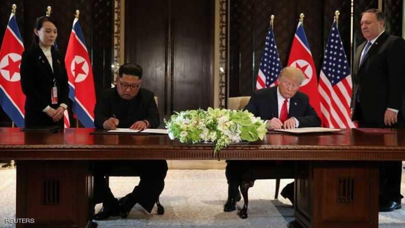 وقبل توقيع الوثيقة التي وصفها ترامب بأنها "خطاب شامل"، قال كيم إنه عقد اجتماعا تاريخيا مع ترامب، وقررا طي صفحة الماضي، مضيفا "العالم سيشهد تغييرا كبيرا".