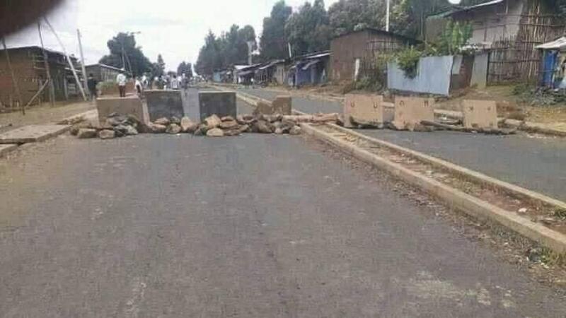 اغلاق الطرق المؤدية الى اديس ابابا بالحجارة!!