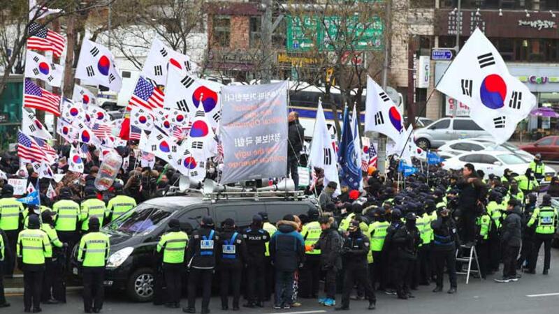 وأضرم البعض النار في علم كوري شمالي قبل أن تتدخل الشرطة، فيما مزق متظاهرون صورا لكيم جونغ اون.