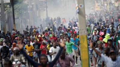 وكانت اشتباكات قد اندلعت في وقت سابق يوم الجمعة بعد أن استخدمت الشرطة شاحنات ومدافع مياه وغاز مسيل للدموع لمنع المحتجين من التوجه إلى مقر قوات الأمم المتحدة لحفظ السلام قرب مطار بورت أو برنس. وأشعل بعض المحتجين النار في إطارات وألقوا حجارة وزجاجات وقنابل مولوتوف في الشوارع.