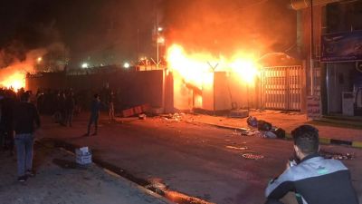 اقتحم محتجون عراقيون مبنى القنصلية الإيرانية في النجف مساء الأربعاء، واضرموا فيها النار، وذلك بعد مواجهات عنيفة مع قوات الامن خلفت عشرات الجرحى بين المتظاهرين.