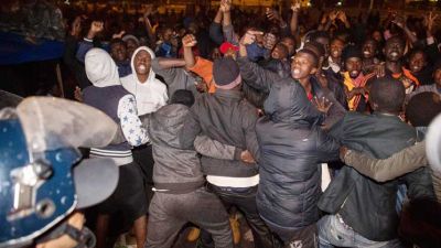 وفيما كانت الشرطة تحض الشبان على العودة إلى منازلهم، هتف عدد من المهاجرين “عنصريون، عنصريون، عنصريون!”.