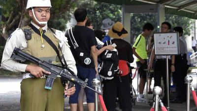 وأضافت الشرطة أنه كان يحمل علما أحمر اللون به خمسة نجوم وهو العلم الوطني الصيني.