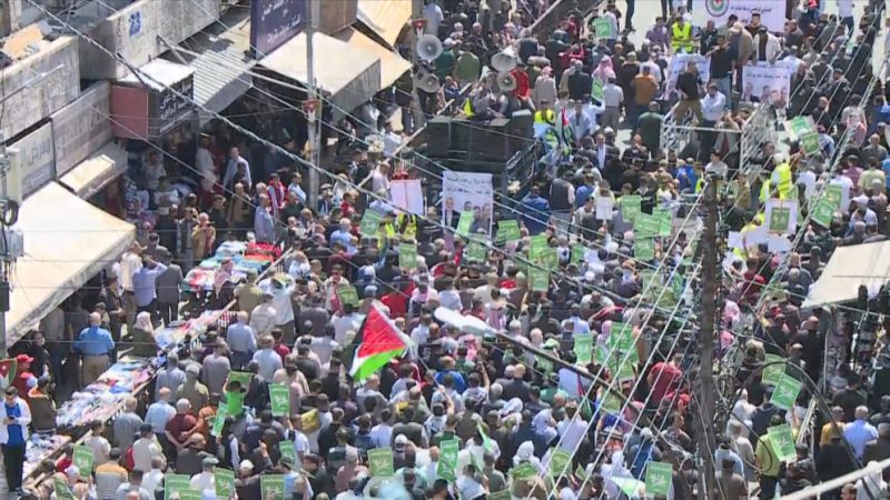 طالب آلاف الأردنيين في مسيرة شعبية حاشدة حكومة بلادهم بقطع كافة العلاقات مع "إسرائيـل" كجزء من الرد على الإبادة الجماعية التي تنتهجها قوات الاحتلال الإسرائيلي في غزة، والاعتداءات المتواصلة على المسجد الأقصى.