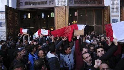 وحضر رجال دين مسلمون ومسيحيون الجنازات التي قادها رجل الدين السني البارز محمد سعيد البوطي.