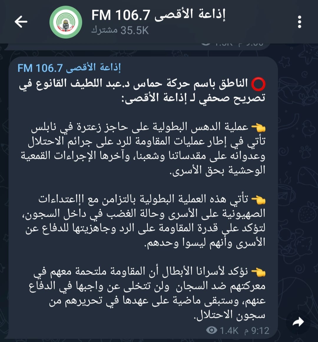 واضاف القانوع ان العملية تاتي كذلك ردا على الإجراءات القمعية بحق الأسرى، وتؤكد "قدرة المقاومة على الرد"، وتبعث برسالة الى الاسرى "أنهم ليسوا وحدهم".